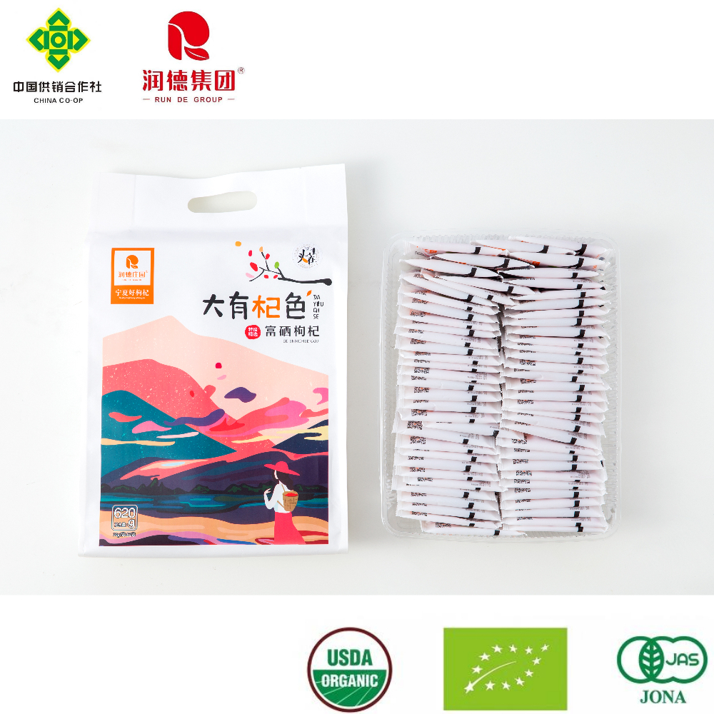 Runde Manor's Selenium - Rich Dried Goji Berries are premium - quality products sourced from the fertile lands of Ningxia, China. These goji berries are carefully selected and processed to retain their natural goodness. Each package contains 620g of dried goji berries, divided into 62 individual 10g bags, which are filled with nitrogen to maintain freshness.